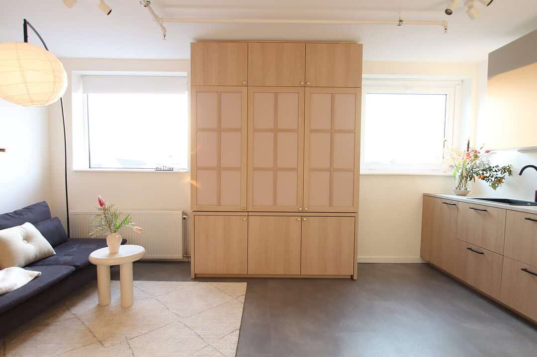 The Citylifer was given the opportunity to renovate nine attic studios, each around 25m². The biggest challenge was optimizing the floor plan to make the studios feel spacious, livable, and high-quality, despite the lower, sloped ceilings and limited space. Maximizing usable space while maintaining a sense of openness was a key focus, reflected in the Nomad studio concept.
